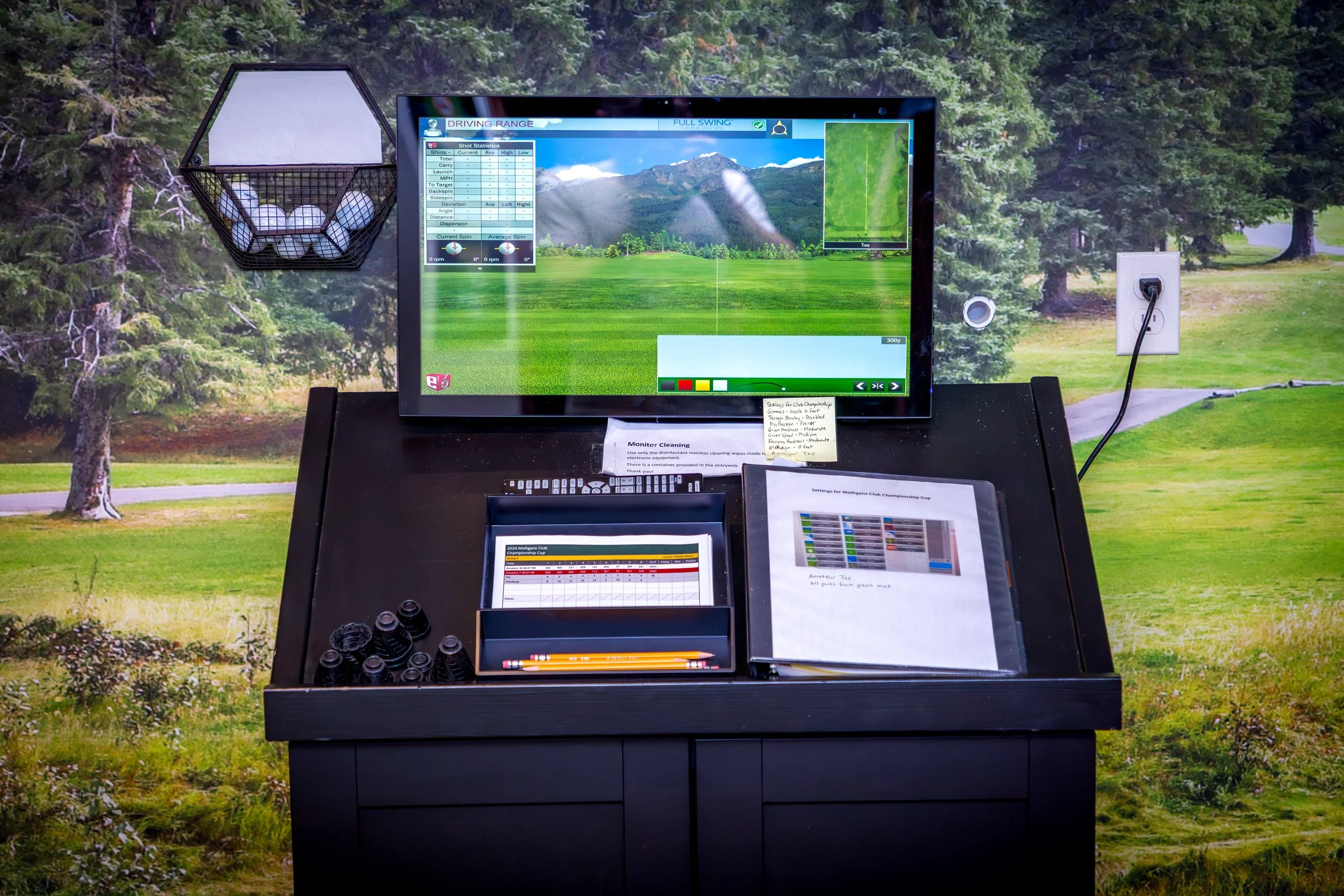 Pay attention, clubs can slip out of players’ hands and balls can fly back at golfer and/or guests if the ball strikes something other than the screen